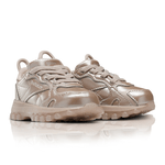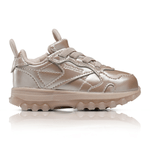 Pure Cardi. All Reebok. Every detail on these infant girls' leather shoes takes design cues from her personality. Transparent details show off her realness. Bold, fierce color evokes her personality. An asymmetrical design nods to her different hustles. The stacked midsole and aggressive lugs on the outsole display her different dimensions. Over the top but also chic, these kicks give your little one legit Cardi B style. Supplier style is (HR0448).