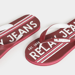 These RJ Engineered Line Flip Flops are a casual wear essential. Made from durable water-resistant material, keep them in your gym bag for showering or stash them in your beach tote for days in the sand. A Relay Jeans logo on the straps and underfoot set them apart from the rest