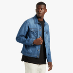 This RJ Striped Denim Trucker Jacket is made from rigid 100% cotton denim for an authentic look and feel. It has a regular fit for a boxy look and features a button-through middle with two patch pockets on the chest and two on the hips.
