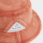 Refresh your headwear with this RJ Washed Denim Bucket Hat. The washed orange denim gives it an effortless casual look while the classic short brim and soft crown serve a classic bucket look. A woven RJ label stitched onto the front completes the look.