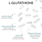 Research has shown that L-Glutathione works on skin pigment production by inhabiting tyrosinase, an enzyme involved in producing melanin.