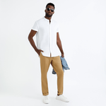 Chinos are a wardrobe staple for the stylish man. These versatile trousers can be dressed up for work with a shirt or dressed down on the weekend with a tee and sneakers.