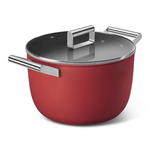 Cooking in style with Smeg! This cookware range brings unmistakable style, superb quality, durability and functionality to the kitchen. Designed and manufactured in Italy, each piece is everything you need to make cooking an absolute pleasure. Produced from cold forged aluminium with a patented steel base for optimal heat distribution and even cooking. The long-lasting multi-layer non-stick internal coating is ideal for healthier and diversified cooking methods without altering the taste of your food.