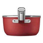 Cooking in style with Smeg! This cookware range brings unmistakable style, superb quality, durability and functionality to the kitchen. Designed and manufactured in Italy, each piece is everything you need to make cooking an absolute pleasure. Produced from cold forged aluminium with a patented steel base for optimal heat distribution and even cooking. 5 year Guarantee.
