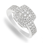 This Sterling Silver ring features a square centre piece, encrusted with glittering Cubic Zirconia.