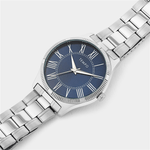 This stylish men’s watch features a round case, sleek blue dial and Silver Plated bracelet strap.