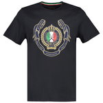 It's game, set and match for style with this Fabiani Tennis Crest Tee in Navy. This slim-fit graphic tee in a short sleeve, crew neck style is made from soft and breathable cotton for a comfortable fit. A vintage-inspired Italian tennis club-style graphic is printed on the front. Pair this tee with chinos and white sneakers for a casual sports-inspired style.