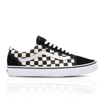 The Primary Check Old Skool, the Vans classic skate shoe and first to bare the iconic sidestripe, is a low top lace-up featuring sturdy suede and canvas uppers with a checkerboard print. It also includes re-enforced toe caps to withstand repeated wear, padded collars for support and flexibility, and signature rubber waffle outsoles. Supplier style is (VN0A38G1P0S1).