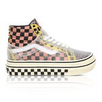 The Vans Mixed Media Super ComfyCush Sk8-Hi Skool is a lightweight, lace-up, high top shoe with re-enforced toecaps to withstand repeated wear, padded collars for comfort, and signature rubber waffle outsoles for a firmer grip. A ComfyCush™ insole with a co-molded construction of foam and rubber gives this shoe increased comfort. This shoe also features a checkerboard pattern. Supplier style is (VN0A4UVM26I).