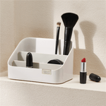 The Viva Tiered Cosmetic Organiser is tiered for easy access and features a removable divider for easy cleaning. Perfect for keeping a neat and tidy space.