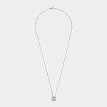 Expertly crafted in 9ct White Gold, this exquisite 7mmx 9mm pendant on a 45cm chain features an emerald-cut Moissanite in a bezel setting. A Created Blue Sapphire sparkles on the basket, symbolising eternal love, truth and faithfulness.