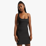 Update yo' drobe with this little black number. Featuring a crepe fabric, fitted fit and cami straps. Style with heels and a shoulder bag for a stunning look.