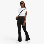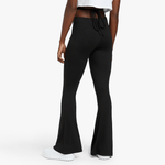 Your weekend drobe is not complete without these banging kick flare pants. Featuring a black poly knit fabric, kick flare fit and a wrap tie detail. Team it with a cute crop top for a killer day-to-day style.