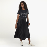 You can never have enough tee's! This one has a stunning foil print and pairs well with a skirt and sneakers for a fun look.