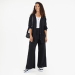 Sleek and comfortable, these wide leg pants in a ribbed material look great paired with the matching cardigan.