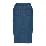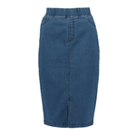 This blue denim skirt with elasticated waist is a seasonal essential. Featuring a slit at the front and elasticated waist, its perfect for weekend fun with a simple tucked-in tee and a pair of sandals or sneakers.