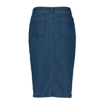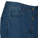 This button through denim skirt is a must-have. Featuring a mid blue wash denim fabric, pockets detail and a front button up closure. Pair with a top of your choice and sneakers or sandals for a complete look.