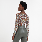 This statement top looks great paired with jeans or tucked in with high waisted pants.