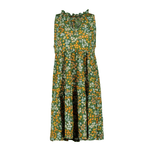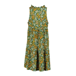 This midi dress with tiering, tie neck with frills and sleeveless design in a beautiful ditsy print will look great paired with sandals and a straw hat.