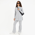 Sleek and comfortable, these kick flare pants in a ribbed material look great paired with the matching knit jersey.