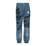Level up your denim game with this dope pair of jeans. Featuring graffiti all over print and a comfy fit.