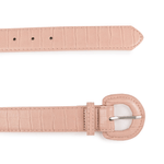Tighten up your style with this women's nude croc covered belt with metal buckle and loops for adjustable lengths.