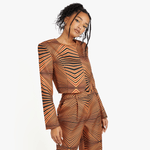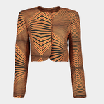 A stylish update with this orange wave print blazer. Pair it up with the matching pants, cropped tee and heels for a stunning look.