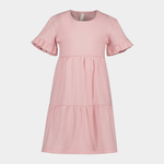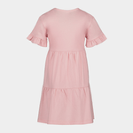 This pink single jersey dress with ruffle short sleeves and tiered design was made to show off her cuteness! Dress her up in this dress with pumps and she will be ready for any occasion.
