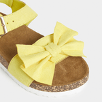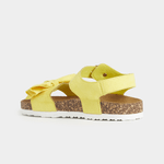 The perfect shoe to go with all your little girls' dresses this coming season. This pair of yellow double strap birkie sandals wit a bow will be your go to shoe, comfortable and practical for every occasion. Pair it with a new dress and your little one is ready for the day.