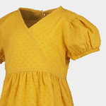 This yellow textured dress with short sleeves and tiered design was made to show off her cuteness! Dress her up in this dress with pumps and she will be ready for any occasion.